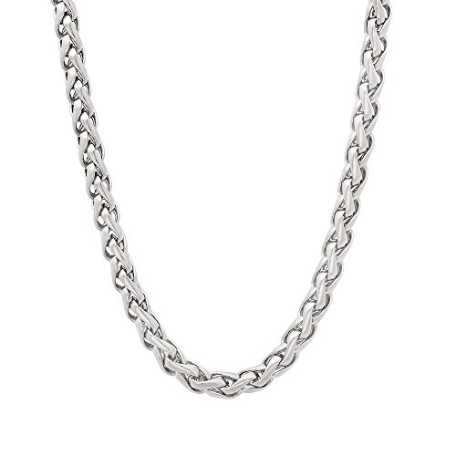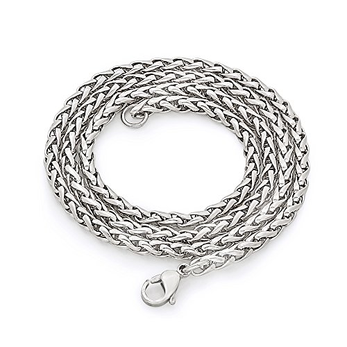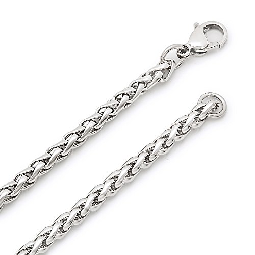 POLISHED & DURABLE - This high polished stainless steel 22 inch wheat necklace is 3.5mm wide (3.5mm thick) that fastens with a sturdy oval lobster clasp