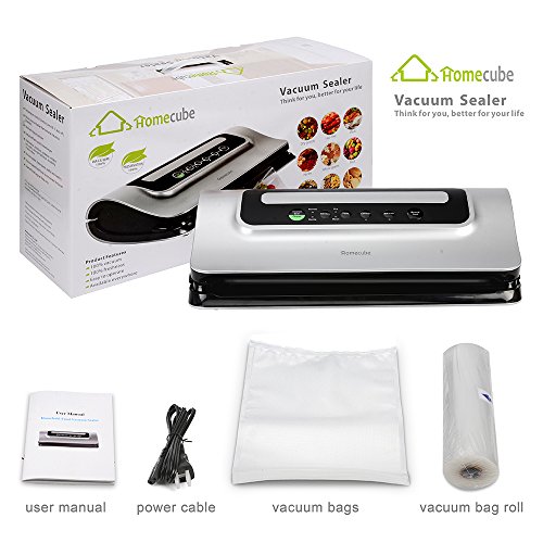 EASY TO OPERATE - Homecube vacuum sealer has the unique sleek surface. One touch vacuum sealer operation, automatic end function when complete with indicator displaying process. Keeps dry and moist foods fresh, prevents freezer burns on frozen fruits and vegetables, keeps ingredients entirely free from nasty bugs and bacteria and locks nutrients in food to give your families a healthy and nutritious life.