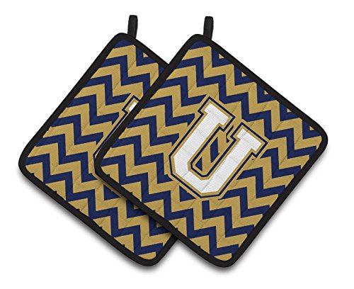 Caroline's Treasures Letter U Chevron Navy Blue & Gold Pair of Pot Holders CJ1057-UPTHD, 7.5HX7.5W, Multicolor
