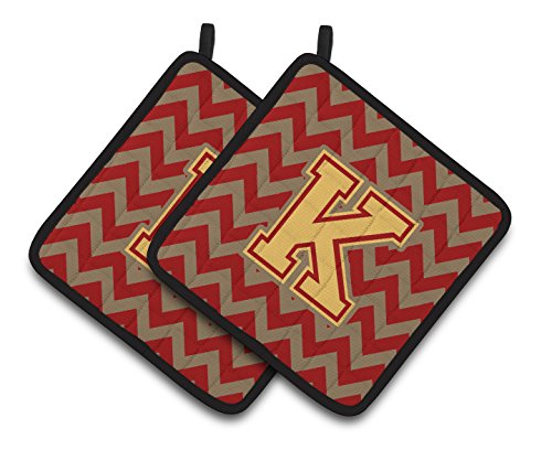 Caroline's Treasures Letter K Chevron Garnet & Gold Pair of Pot Holders CJ1048-KPTHD, 7.5HX7.5W, Multicolor