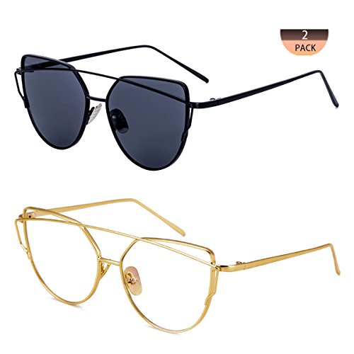 PRODUCT DETAIL lenses width : 57 millimeters lenses height : 52 millimeters Bridge : 18 millimeters Arm : 140 millimeters Total width : 143mm Resin lenses : 100% visible light perspective UV resistance level : UV400 Coated lenses : polarized Transparent lenses:non-polarized WHAT YOU GET Sunglasses * 2 Glasses Cloth Bag * 1 Soft Glasses cloth* 1 Protective Case * 1 HOW TO CARE 1.To avoid damage, please never clean your sunglasses with paper towels or clothing, just use our soft glasses cloth to gently wipe lenses. 2.To wash it, please use clean water(DO NOT use others liquid),after washing it,as soon as possible wiping dry to prevent the frame from rusty.