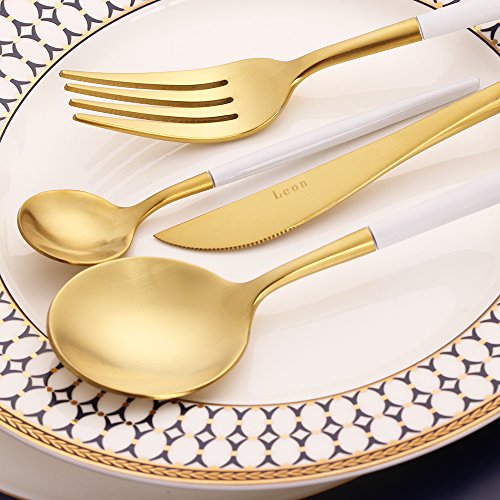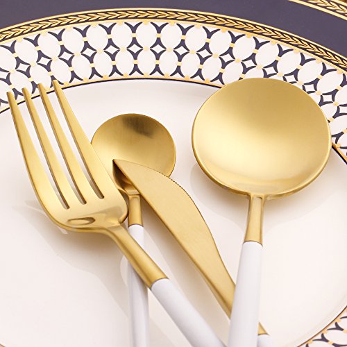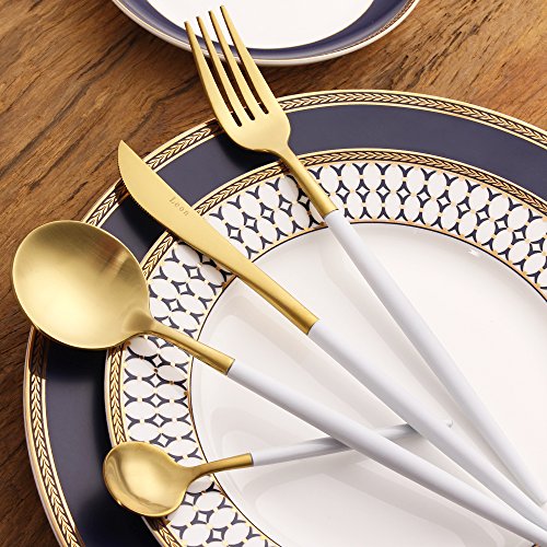 LEKOCH 4-Piece Stainless Steel Flatware Set Including Fork Spoons Knife Tableware (White+Golden)