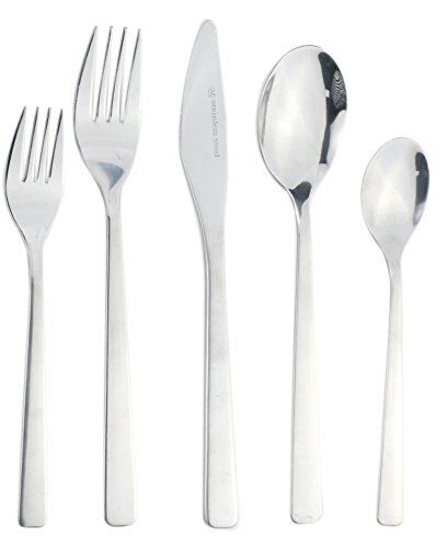 - SIMPLE YET ELEGANT: No dealing with an overly-detailed stainless steel flatware set that comes off as cheap and cheesy. Our Moderno stainless flatware exudes an effortless elegance with its unique look, clean lines, and simple detailing on the handles. Match any dining setting with a modern flatware set that is understated yet eye-catching.