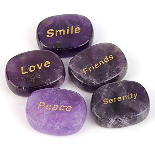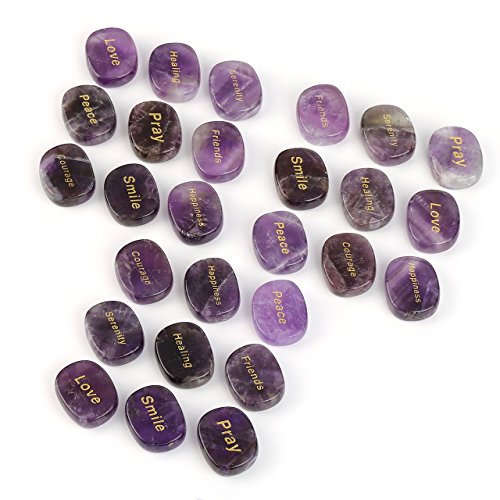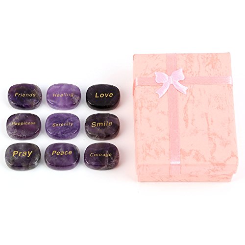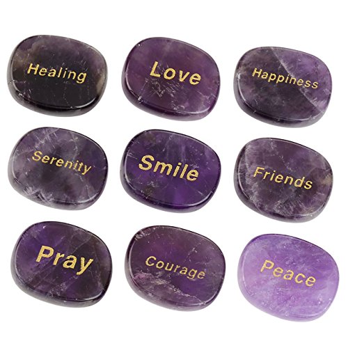 Top Plaza 9pcs Natural Crystals Chakra Engraved Inspirational Motivational Word Stones Reiki Healing Yoga Meditation Balancing Faith Stones Worry Stones(Amethyst)