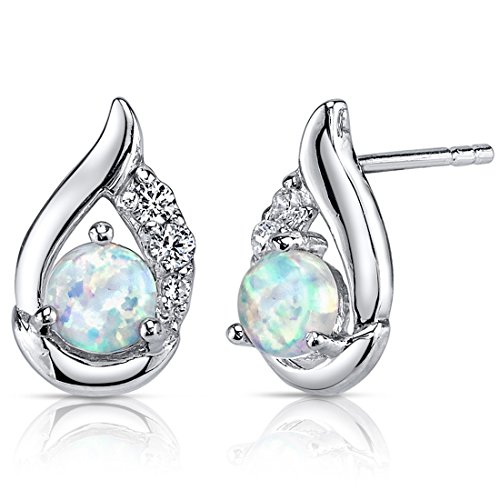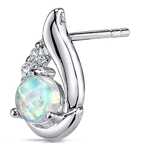 Gemstones: 2 pieces Lab Created White Opal, Round Cabochon Shape, 5 mm, shimmering multi-color hues, 1.00 Total Carat Weight. 6 Pieces Super Sparkling White Cubic Zirconia. Earrings: 1.8 grams pure Sterling Silver with .925 Stamp. Earrings feature exceptional Design, Craftsmanship and Rhodium finishing. Perfect gift for Mothers Day, Birthdays, Valentines Day, Graduation, Christmas or just about any other occasion. Money Back Guarantee. Includes a Signature Gift Box. Style SE8368Feature