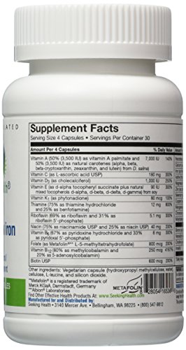-. Feature : IMPORTANT: Optimal Multivitamin With Iron by Seeking Health is manufactured for and sold exclusively by Seeking Health. We DO NOT recommend purchasing this formula from any supplier other than Seeking Health on Amazon.com. / Provides 28 essential vitamins, minerals, and trace elements. / Higher potency amounts compared to standard multivitamins*. More complete "families" of nutrients for vitamins A and E for balance and safety* / Higher amounts of vitamin D than regular multivitamins to support bones and general health*. Folate, B12, and other B vitamins in bioactive forms that are more readily utilized. / Essential minerals in easy-to-absorb forms that are gentle on the digestive system. Extra iron in a well-tolerated form that does need stomach acid for absorption. Free of magnesium stearate.
