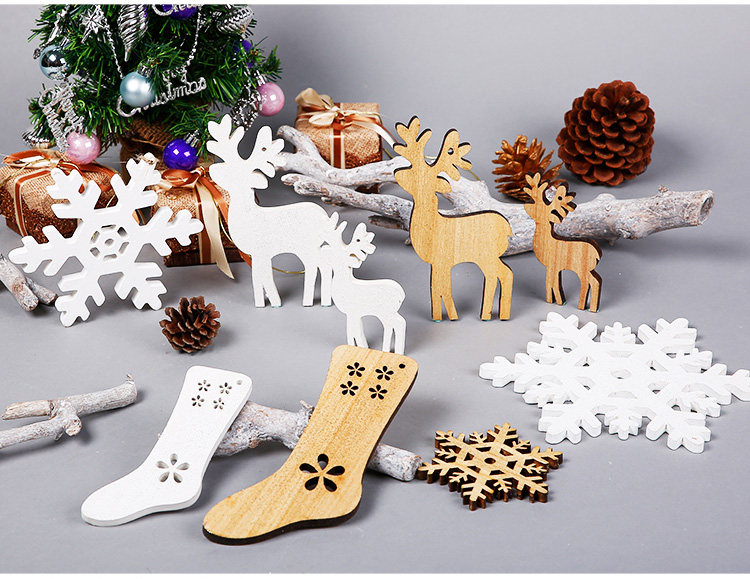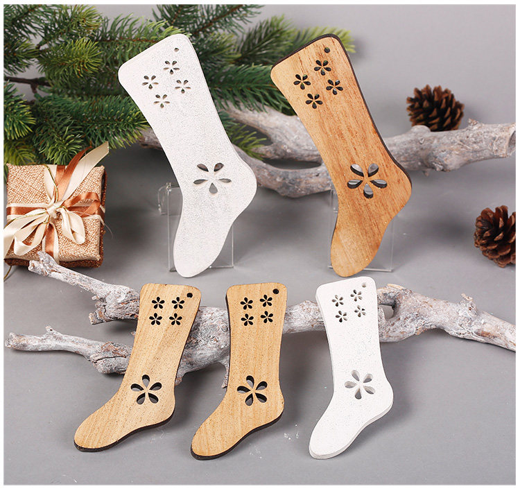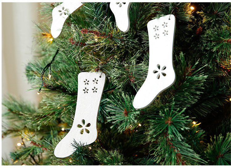 台湾晶华造花高端冰晶木制圣诞雪花袜子鹿圣诞节用品树/圈挂件