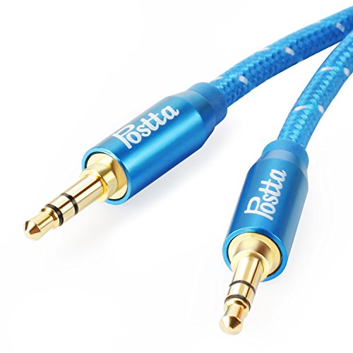 3.5mm Braided Stereo Audio Cable with 24K Gold Plated Connectors-1 Pack(Blue).