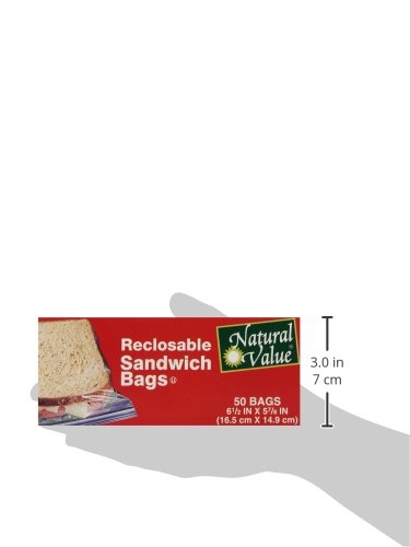 Natural Value Reclosable Sandwich Bags, 50 Bags