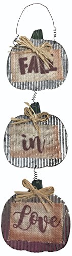 Includes (1) Rustic Corrugated Metal Sign with Creme Rust Burlap and says "Fall In Love" Sign adorned with a Raffia Bow (19" x 5.5")