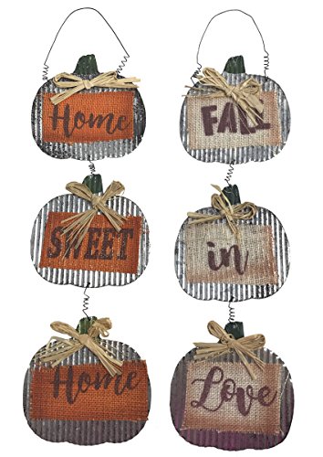 Fall Decoration Hanging Indoor Outdoor Welcome Rustic Metal Sign- Fall In Love & Home Sweet Home - Set of 2