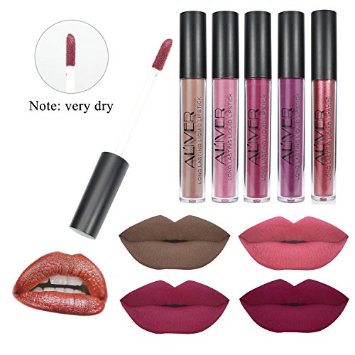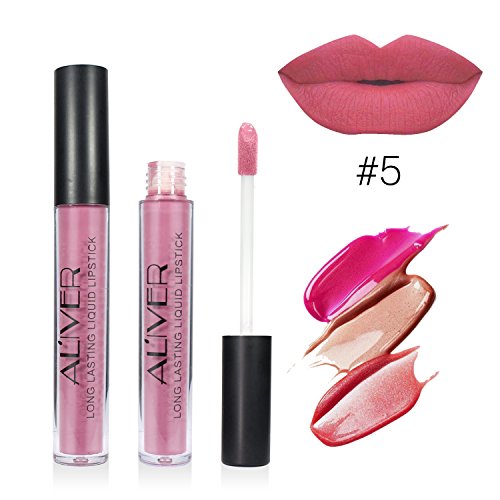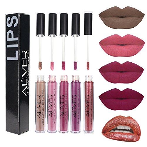 ALIVER 5 Pcs Matte Liquid Lipstick Waterproof Long-Lasting Pigmented Lip Gloss Set (#4.5.6.7.11)