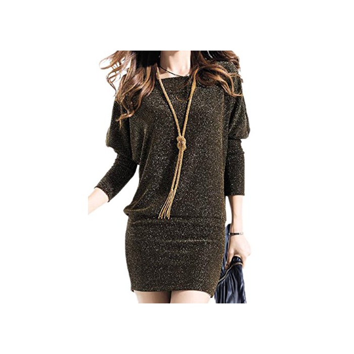 원본상품명: (エンジェルムン) AngelMoon ワンピス 長袖 ミニ丈 ゆるぴた ニット ラメ ドルマンスリブ レディス