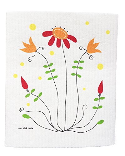 Swedish Dishcloth, Set of 2 Orange & Red Flowers Blomma
