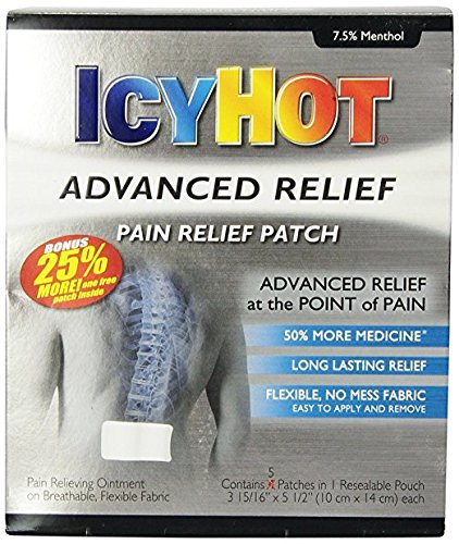 -. Feature : Icy Hot Advanced Medicated Pain Relief Patch 5 Patches per Box (9 Pack) / Advanced relief at the point of pain with 7.5% menthol / Long lasting relief with flexible, no-mess fabric that is easy to apply and remove / Pain relief ointment on breathable, flexible fabric