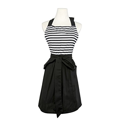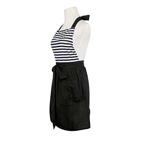 Apron for Women with Pockets, Extra Long Ties, G2PLUS Black and White Apron, Perfect for Kitchen Cooking, Baking and Gardening, 29 x 21 - inch (Black and White Stripe)