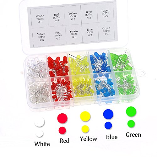 Glarks 300pcs 3mm and 5mm Assorted Color clear 2pin Diffused LED Light Emitting Diodes Electronic Parts with 5 Colors Kit