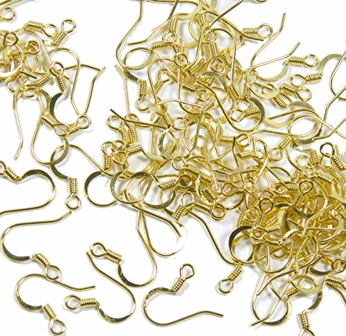 200 Surgical Steel Earring Earwires 16mm Hypoallergenic Shiny Gold Plated Fishhook with Flat Side and Coil 100 Pairs. (200)