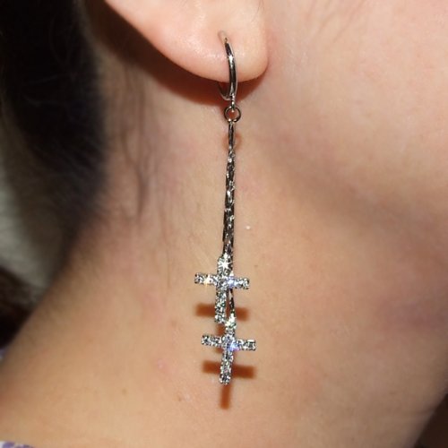 -. Feature : サイズ:全長65mm,クロス(横)10.5mm x (縦)12.5mm / 素材:2mmクリスタルラインストーン / ホワイトゴールドコーティング
