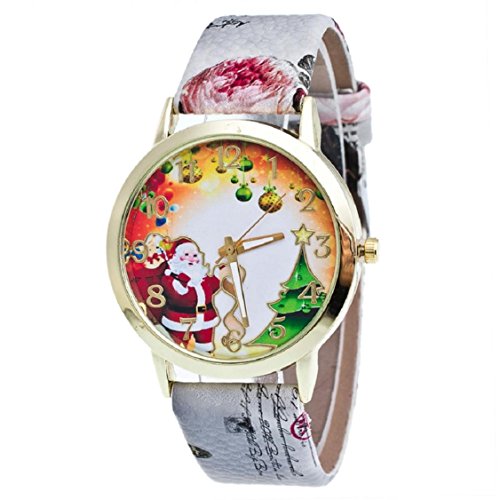 -. Title : Damen Uhr, OverDose Christmas Weihnachten Ältere und Baum-Muster-Leder-Band-Analog-Quarz-Mode-Uhren (Grau)