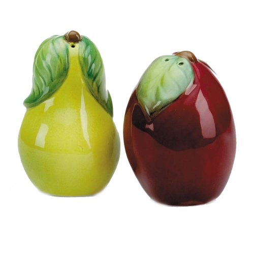 [Product Information]- Peach and plum salt and pepper shakers from country-fresh Orchard in Bloom dinnerware collection