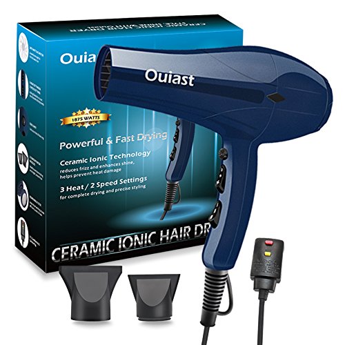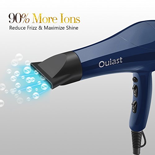 Ouiast Hair Dryer Professional 1875W AC Motor for Fast Drying, Ionic Ceramic Blow Dryer with 3 Heat 2 Speed Setting Cool Shut Button, 2 Concentrators...