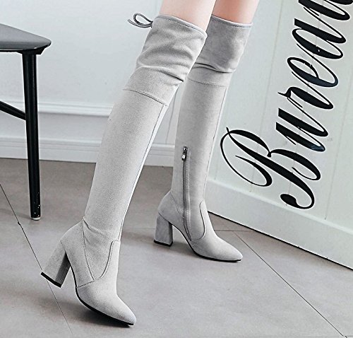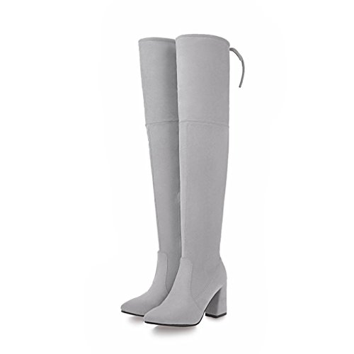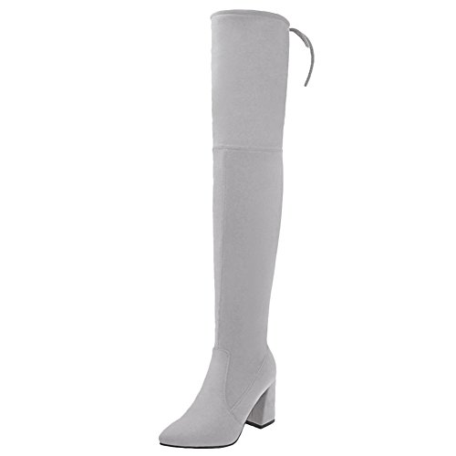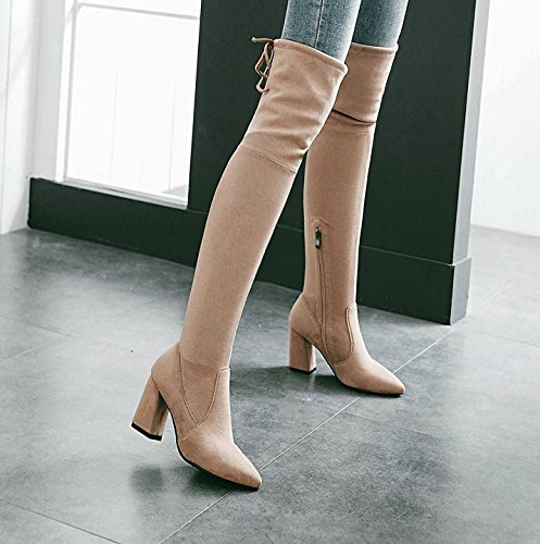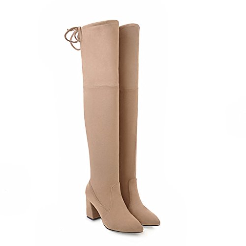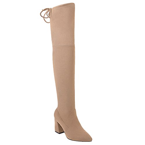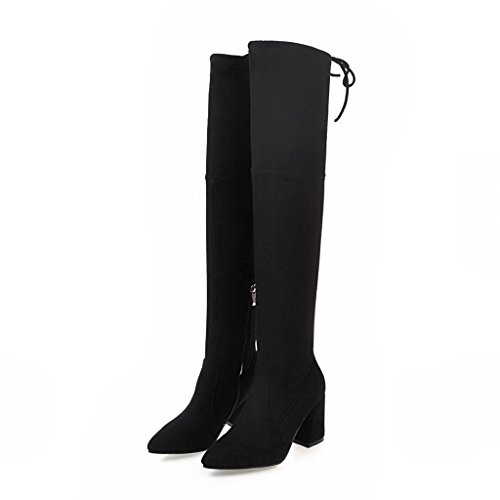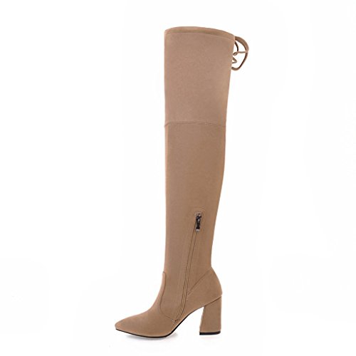 (Show Shine)/Women's/Boots/DIRECT FROM USA/Show Shine Women's Chic Zip Lace Up Chunky Heel Tall Boots