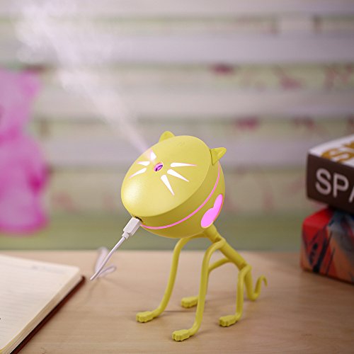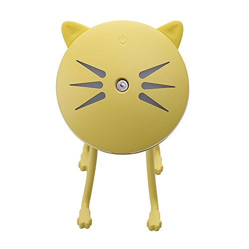 ZLMC Mini USB humidifier office car humidifier cat adorable humidifier cat adornment Night light for bedroom,desk (Yellow)