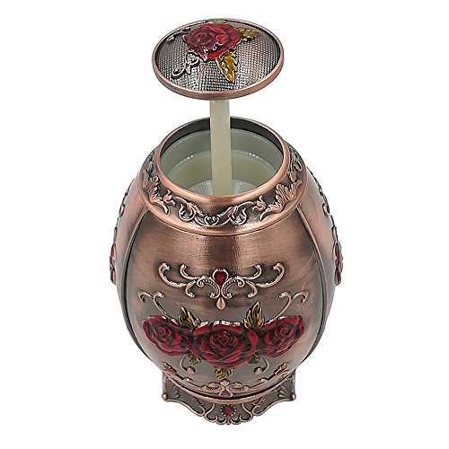 Retro Metal Automatic Toothpick Holder,Push Style Egg Shape Auto Toothpick Case for Home Restaurant Party Decoration,Rose,Red Bronze