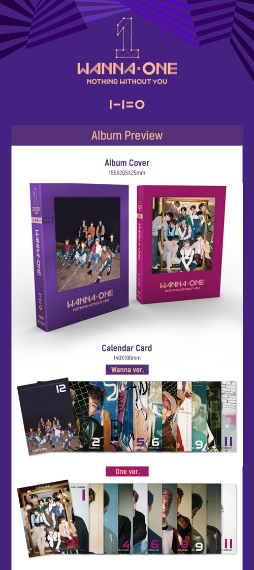 韓国音楽 WANNA ONE(ワナワン) - リーパッケージ 「1-1=0 (NOTHING WITHOUT YOU)」 (バージョン2種の中1種選択/CD+フォトブック+カレンダーカード1種+フォトカード1種+ミニ等身大1種+ゴールデンチケット1種)+ポスター筒