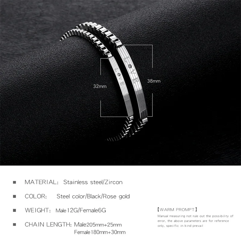 material:Stainless Steel Crystal Couple Bracelets