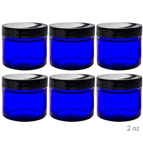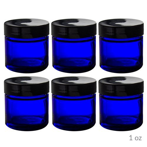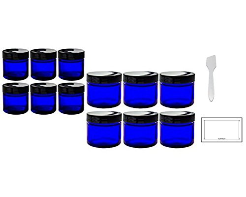 12 piece Cobalt Blue Glass Straight Sided Jar Set: Includes 6 -1 oz Cobalt Glass Jars and 6 -2 oz Cobalt Glass Jars + Spatulas and Labels for Aromatherapy, Essential Oils, Travel and Home