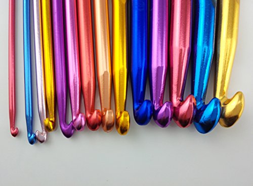 yueton 14 Sizes Aluminum Weave Craft Crochet Hook Needles Set - Knitting Needles - Aluminum Handle Crochet Hook Knit Needle Weave Yarn Set (Set of 14, 2.0mm-10.0mm)