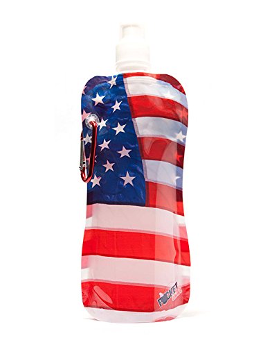 Zees Inc Pocket Bottles Cb1041 American Flag Foldable Bottle, 16 Oz, Multicolor