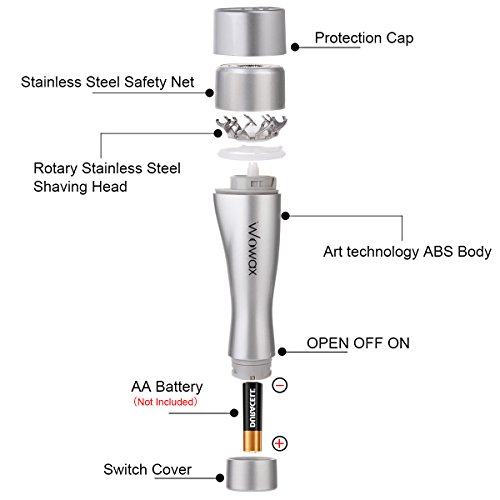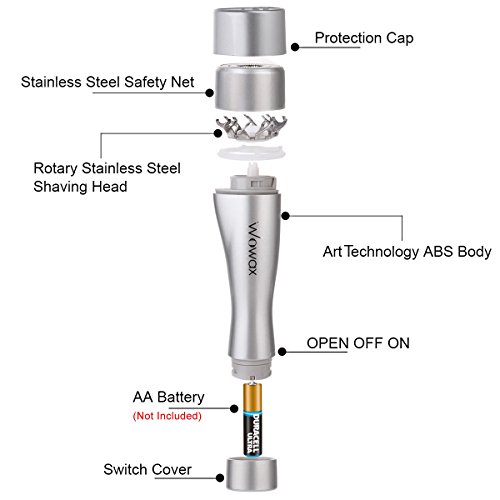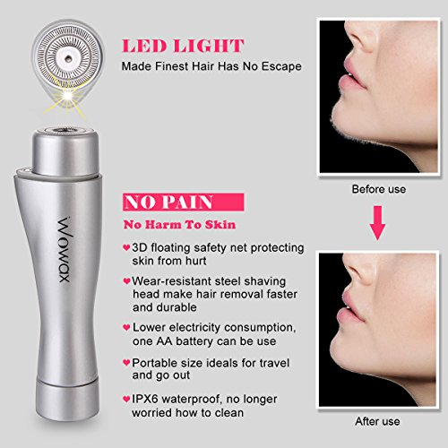 Studio : WOWAX Publisher : WOWAX Binding : Misc. Product Description Specifications:? - Item Type: Hair Remover - Material: ABS? - Dimension: 110 x 27mm (L x W)? - Color: Silver - Weight: About 50g? - Battery Required : AA *1 (Not Included) Features:? - Safe to use, no skin irritation and scratches? - Built-in Light , Let you see the finest hair - Perfect for fine hair - Mini design, convenient to carry? - IPX6 waterproof, can shave in the shower - Battery not included Package Included:? - 1*Facial epilator - 1*User manner - 1*Brush Attentions:? 1. Take out the battery when not using to prevent the leakage of electricity.? 2. Don't use it when your skin is hurt, bleeding or damaged.?