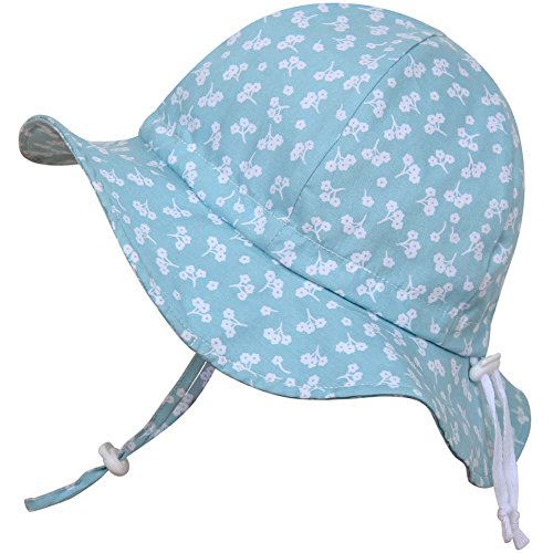 Baby Sun Hat with Chin Strap, Drawstring Adjust Head Size, Breathable 50+ UPF (S: 0 - 9m, Mint flower )