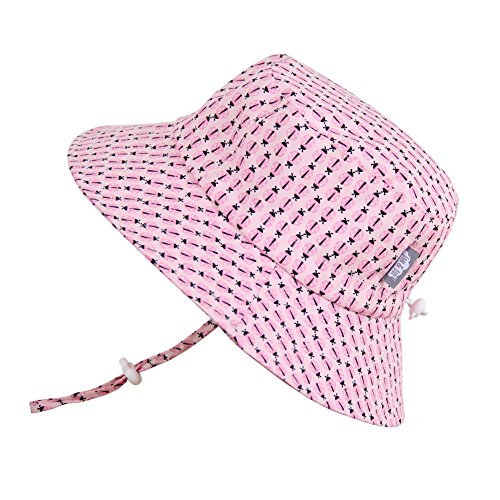 Kids Sun Hat with Chin Strap, Adjustable Head Size, 50+ UPF Cotton ( Bucket L: 15m-5Y, hearts )
