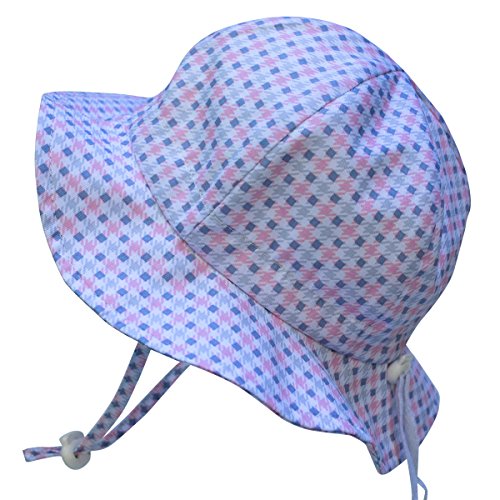 Baby Sun Hat with Chin Strap, Drawstring Adjust Head Size, Breathable 50+ UPF (S: 0 - 9m, Pink plaid )