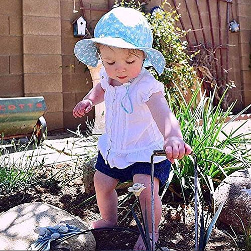 Toddler Sun Hat with Chin Strap, Drawstring Adjust Head Size, Breathable 50+ UPF (M: 6m - 3Y, Mint flower )
