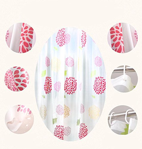 SelfTek Bathroom Curtains Waterproof Sunflower Print Shower Curtain with Hooks 180X200cm