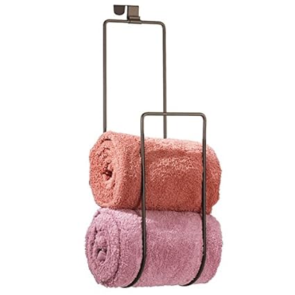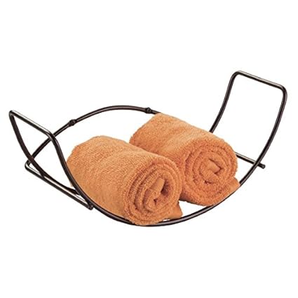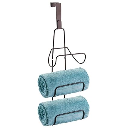 - Features a curved arm designed to hold large bath towels in place