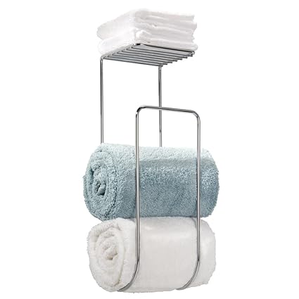 [Product Information]- Wall mount bath towel holder with a top shelf for hand towels or washcloths