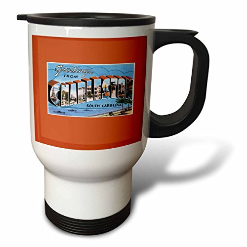 3dRose tm_170615_1 Greetings from Charleston South Carolina Ocean Scene Stainless Steel Travel Mug, 14 oz, White