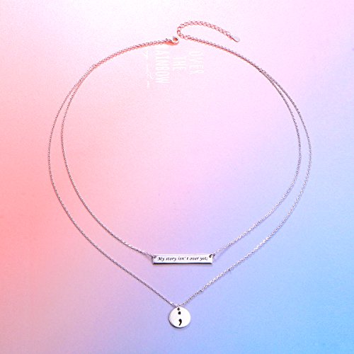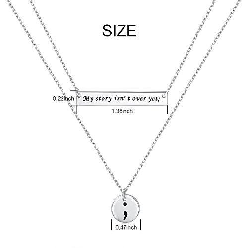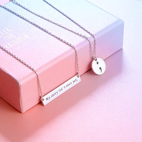 Theme : Semicolon symbol layered necklace, unique design. The bar engraved Inspirational quotes " My Story Isn't Over Yet; " . Good gift to someone who need courage in life.