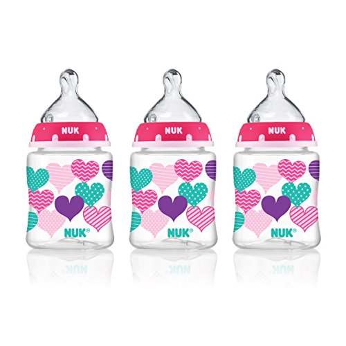 -. Binding : Baby Product -. Brand : NUK -. Color : Translucent -. Feature : Only NUK bottles feature an orthodontic nipple that supports healthy oral development / Features the unique NUK Air System which helps to reduce colic / Natural shape nipple mimic's Mom's nipple shape to allow easy back and forth between breast and bottle / Drinking hole located at the top side of the nipple and the tip on round bottle nipple provides easier digestion / BPA free -. Label : NUK -. Manufacturer : NUK -. ProductGroup : Baby Product -. ProductTypeName : BABY_PRODUCT -. Publisher : NUK -. Size : 5 oz -. Studio : NUK -. Title : NUK 3 Count Trendline Tie Dye Orthodontic Bottle