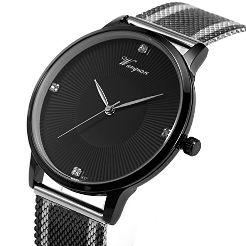 -. Title : SIBOSUN 腕時計 メンズ 超薄型 メッシュ ステンレス 鋼 日本クォーツ 防水 日付 黑 ダイヤル