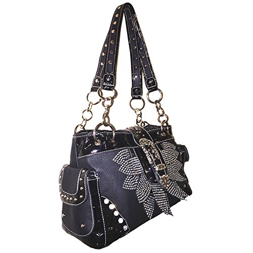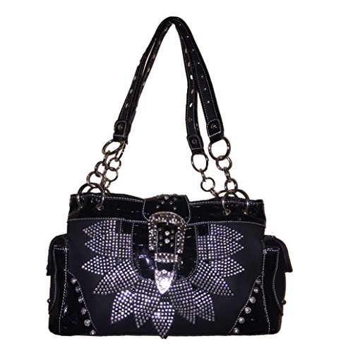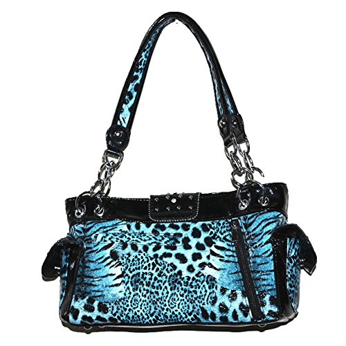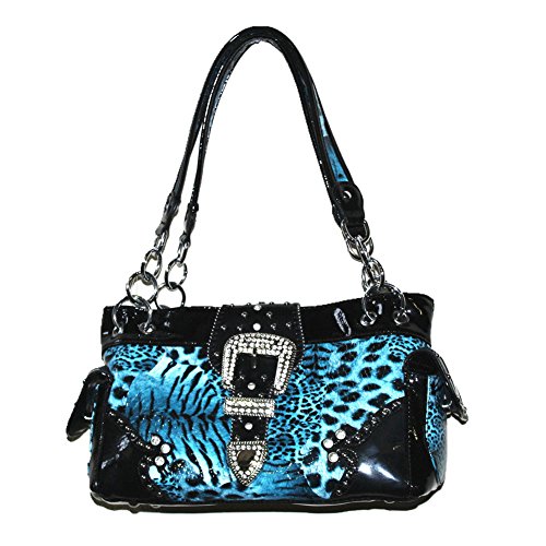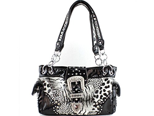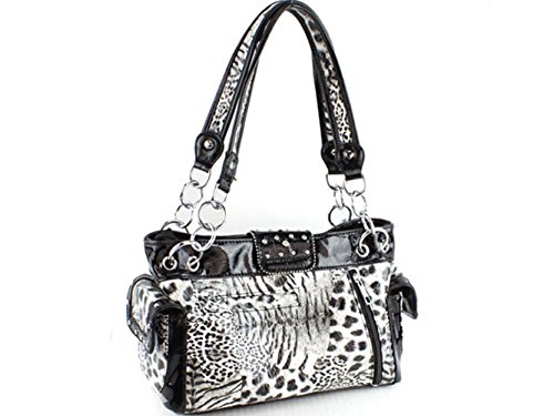 Product Description Texas West Leopard Buckle Conceale carry Women's Handbag Purse in 4 Colors. New with Fast Shipping. Handbag Size: 13" x 8" x 5", Weight about 2.5lbs. Handbag with commpartment inside with cellphone pocket, keys pocket. pocket with zipper inisde. Large pocket on back for everything easy to get. Concealed carry pocket on back fits most guns. Leopard shinning leather buckle design. premium womne's concealed carry handbag purse. Same business day handling with fast shipping. 0