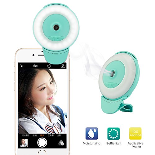 Security 2-in-1 Selfie Ring Light + Facial Mist Sprayer, 100 Lumens Clip Selfie Camera Light LED Rechargeable Beauty Fill Light for IPhone, Portable Mini Water Replenishing Humidifier