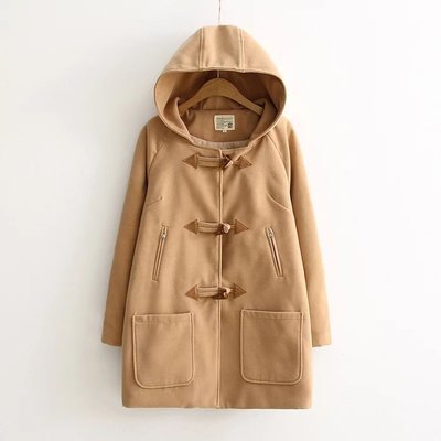 -. Feature : レディース向けSサイズ ダッフルコートです / フードがついているので、防寒、防風に優れています / 着丈 77 cm 胸囲 102cm 袖長さ 64cm