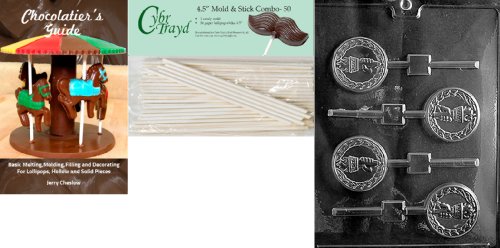 Cybrtrayd 'Torch Lolly' Sports Chocolate Candy Mold with 50 4.5-Inch Lollipop Sticks and Chocolatier's Guide